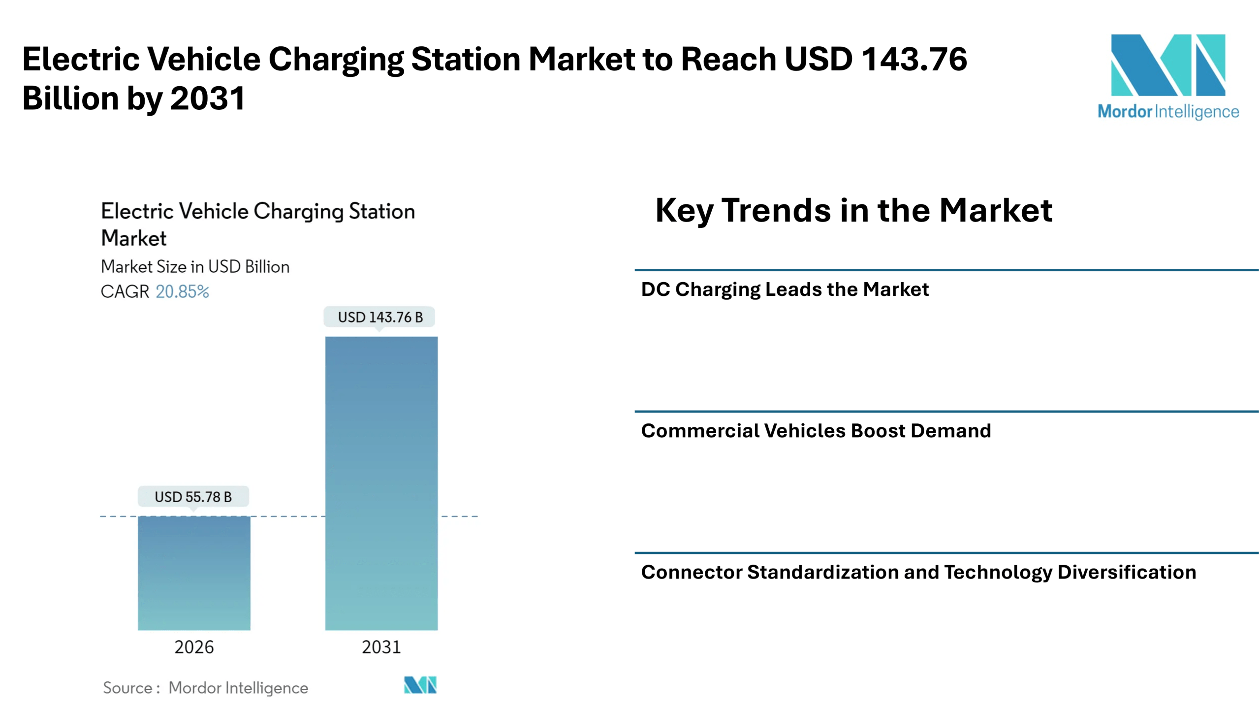 Electric Vehicle Charging Station Market to Reach USD 143.76 Billion by 2031 – Mordor Intelligence